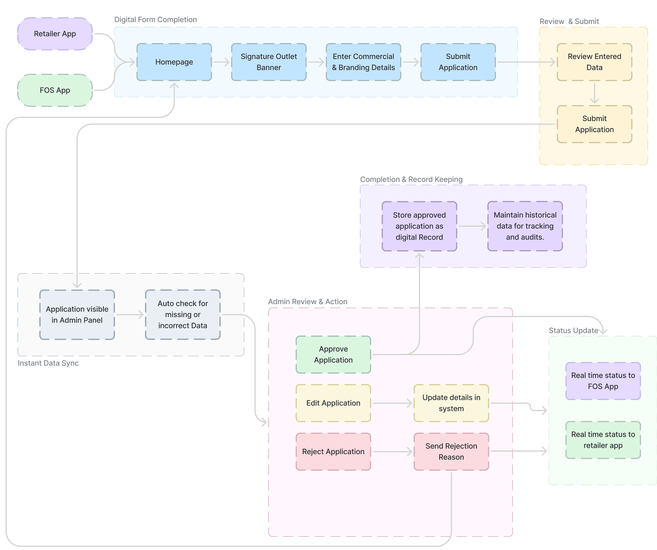 We developed a digital onboarding solution for both FOS and retailers, with a comprehensive admin panel: